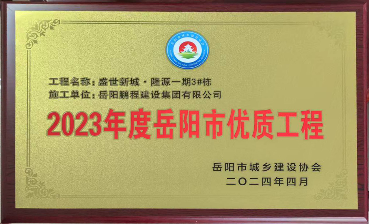 2023年度岳陽(yáng)市優(yōu)質(zhì)工程--盛世新城隆源一期3#棟